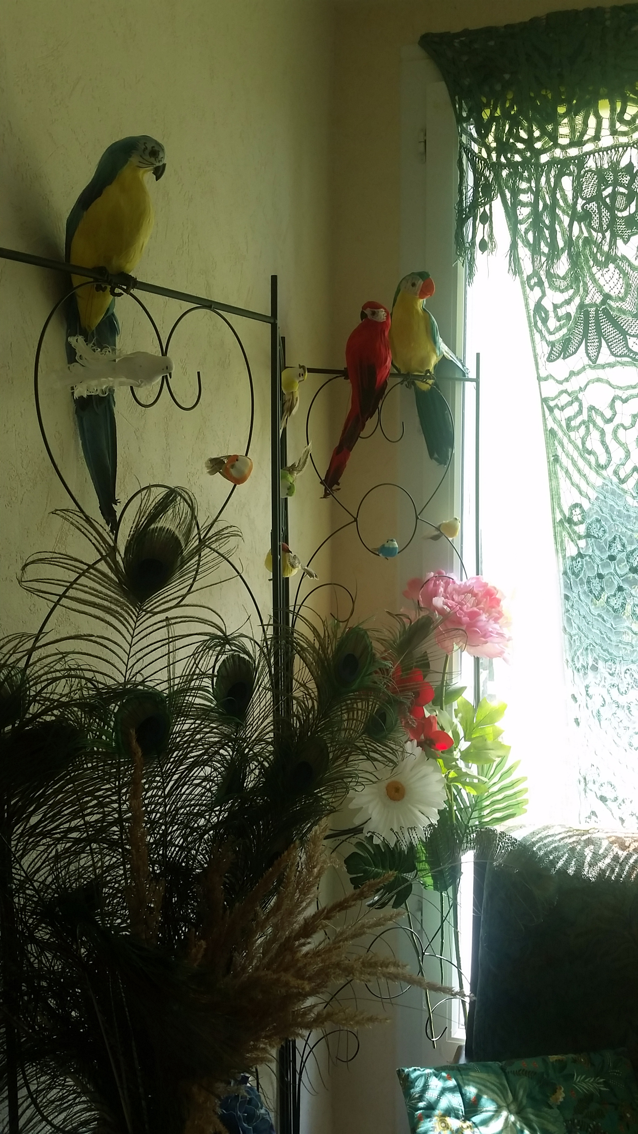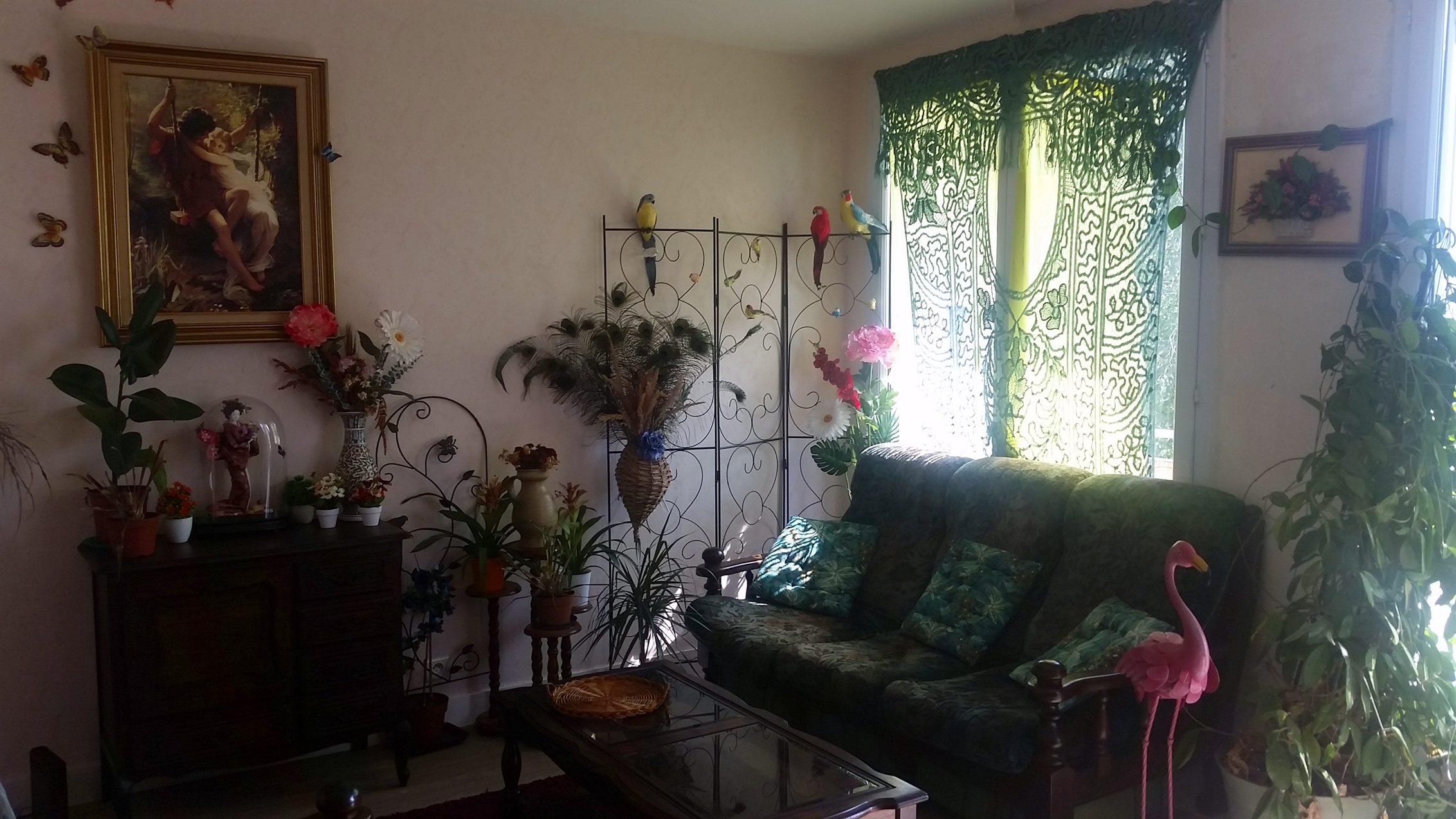 Quand j’ai décidé de décorer le salon pour le retour d’Evy au printemps, j’ai bien vu que si l’argent avait été là à profusion, ma frénésie dans la création de ce jardin aurait été sans fin. Il est toujours inachevé pour des raisons financières, mais j’espère pouvoir reprendre prochainement, et surtout le finir avant le retour du printemps.