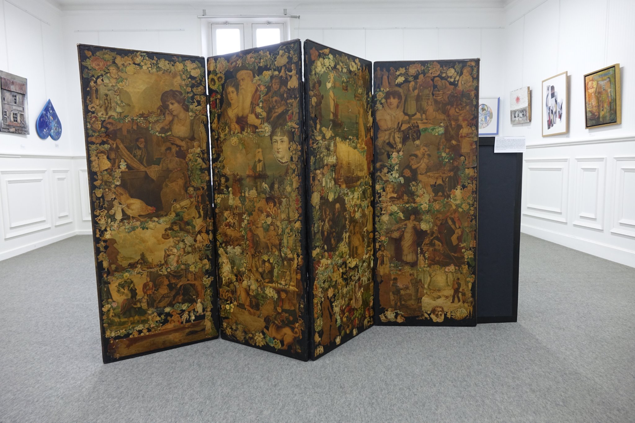 Parmi les acquisitions effectuées par le musée Artcolle en 2021 (et cela grâce aux cotisations des adhérents, collagistes ou non, des Amis du musée, sans qui celui-ci ne saurait et ne pourrait être) figure un paraventage des années 1870-1880.