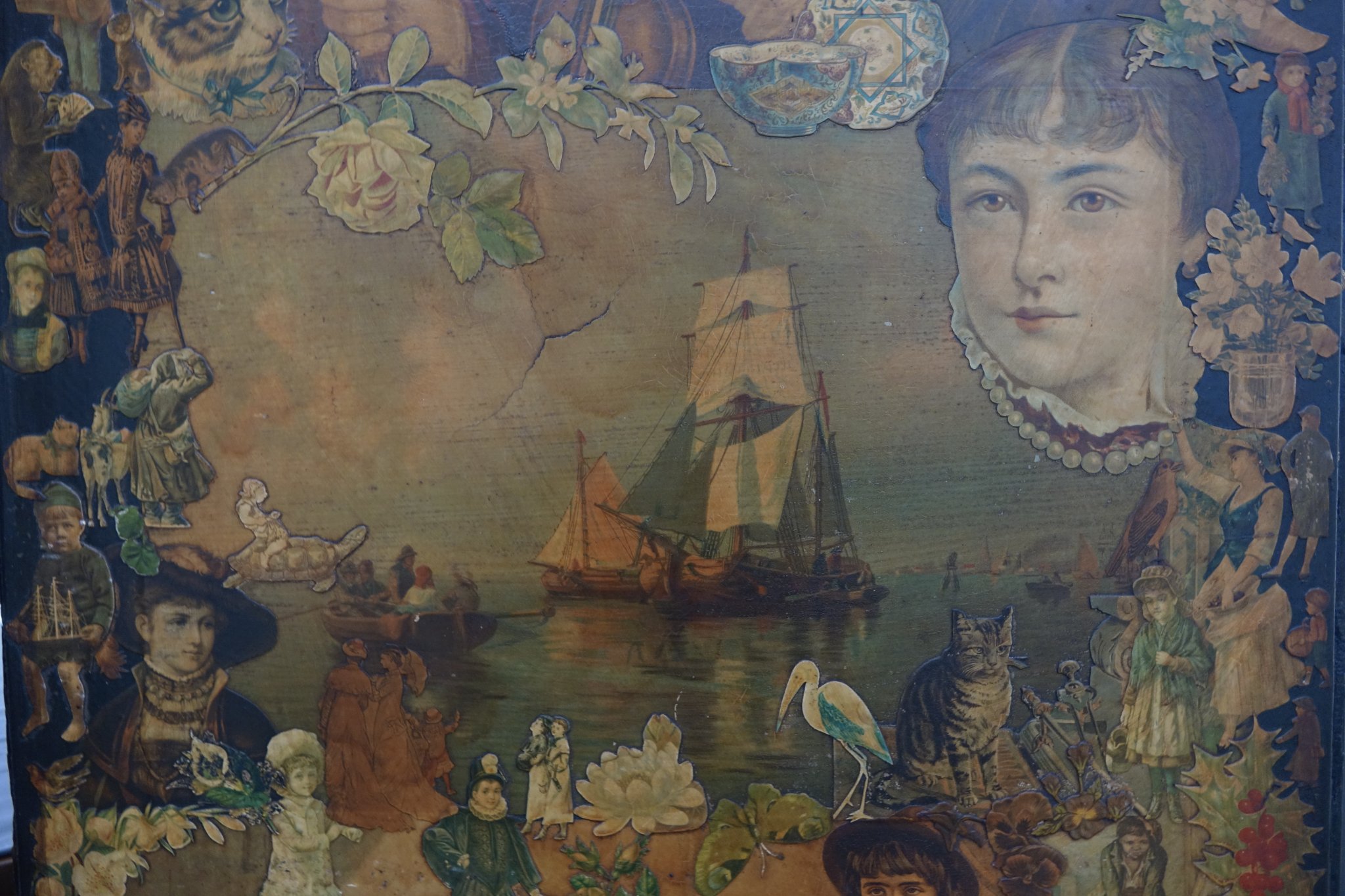 Pour mémoire le collage de gravures colorisées sur des paravents fut principalement pratiqué entre 1860 et 1880, de par la production des journaux de l’époque, par des artistes ou des personnes aisées, et ce principalement en Angleterre.